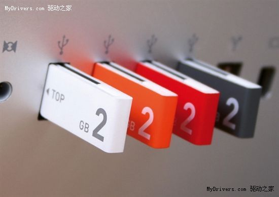 圖片中展示的曲別針U盤為2GB、4GB容量,分為白、黑、橙、紅四種顏色,不過該U盤什么時候能夠開始生產并進入市場目前還不清楚。