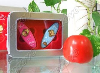 筆者今天向大家推薦一款由帝特電子出品的超級卡哇伊悠嘻猴情侶U盤,獻給年輕可愛的情侶們。這款卡哇伊情侶U盤采用亮紅的紙盒包裝,盒上印有悠悠與嘻嘻的形象頭像,正面心形圖案的鏤空顯示出雙心相映的濃情。透過心形鏤空,可以看到精致的藍色悠悠與粉紅嘻嘻梭形U盤。清雅的藍色適合男孩子,粉紅色一定是甜美女生們的最愛!