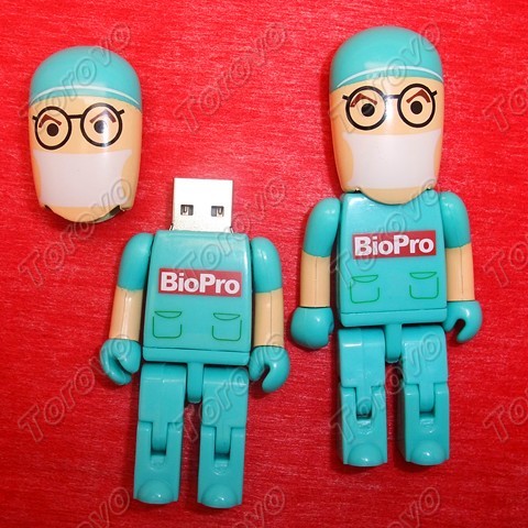 此款綠色醫生造型U盤除了最基本的功能外還能夠進行關節活動,無聊的時候用來打發時間還是很有趣的。