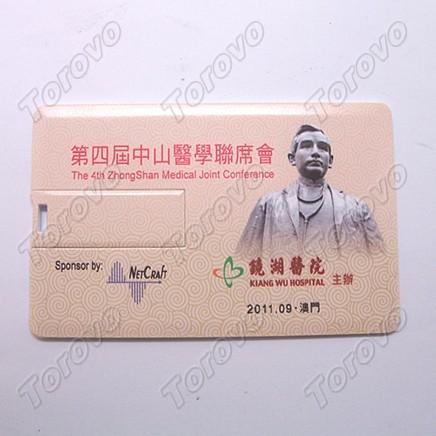 此款名片U盤是澳門鏡湖醫(yī)院慈善會定制,尺寸為是83*52*1.8mm,左右翻轉(zhuǎn)式卡片U盤,銀行卡大小,方便攜帶。卡片U盤可個性化設(shè)計,圖案自選。容量可以做到512M,1G,2G,4G,8G,16G。采用A級閃存芯片,數(shù)據(jù)存儲持久穩(wěn)定。
