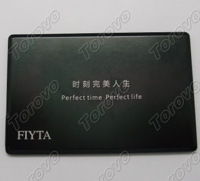 該名片U盤是專為飛亞達公司制作,是全鋁制金屬制作,輕便。U盤與殼身采用軟塑料排線連接,方便抽拉。在殼與U盤間設有一個金屬小彈片,當U盤收進來時,用以卡住U盤,以防止U盤從殼身滑出。 飛亞達全稱為深圳市飛