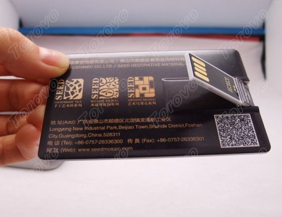 該款U盤是正益通為佛山塞德一家裝飾材料公司專門定制,供名片U盤與廣告的整合定制:可在U盤盤體印制LOGO ,U盤芯片內固化公司宣傳內容(視頻、文檔、圖片等)動畫自動播放等增值服務,真正做到由內到外個性定制。