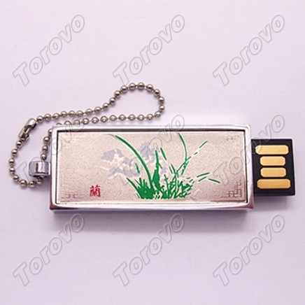 此款U盤采用推拉式設計,內置超薄芯片,具備防塵、防靜電、防磁、耐高溫等特點。U盤上印有蘭花圖案,非常精致,可隨身攜帶。