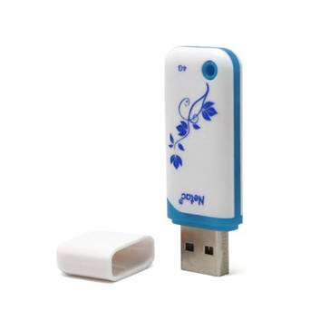 朗科U188閃存盤采用了簡單清爽的塑料全封包裝,有效防止產品被惡意打開或造假等問題。打開包裝后我們可以看到以青花瓷為元素設計的朗科U188閃存盤,外表由于經過特殊工藝處理而具有流暢的造型與細膩的手感。